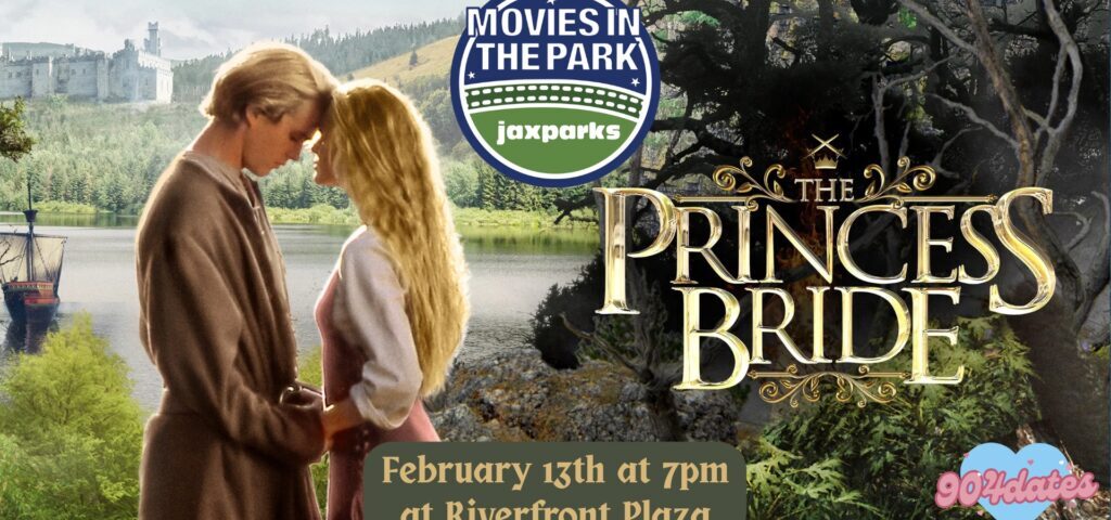 Join Jax Parks for a special, Valentines Day edition of Movie Night in the Park! On Friday, February 13th, join us at Riverfront Plaza in Downtown Jax for a special showing of The Princess Bride! We will have Food Trucks, Popcorn, and the Riverwalk Bar onsite serving up drinks!